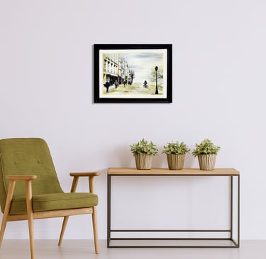 Camaïeu de couleurs pastels et sobriété pour ce tableau donnant une ambiance de calme et de douceur.