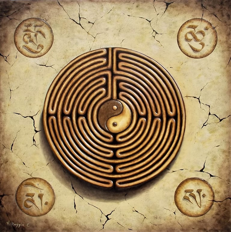 Symboles de l’équilibre et du cheminement réunis, ce tableau nous offre une esthétique pleine de sens et de lumière.