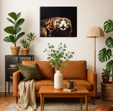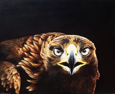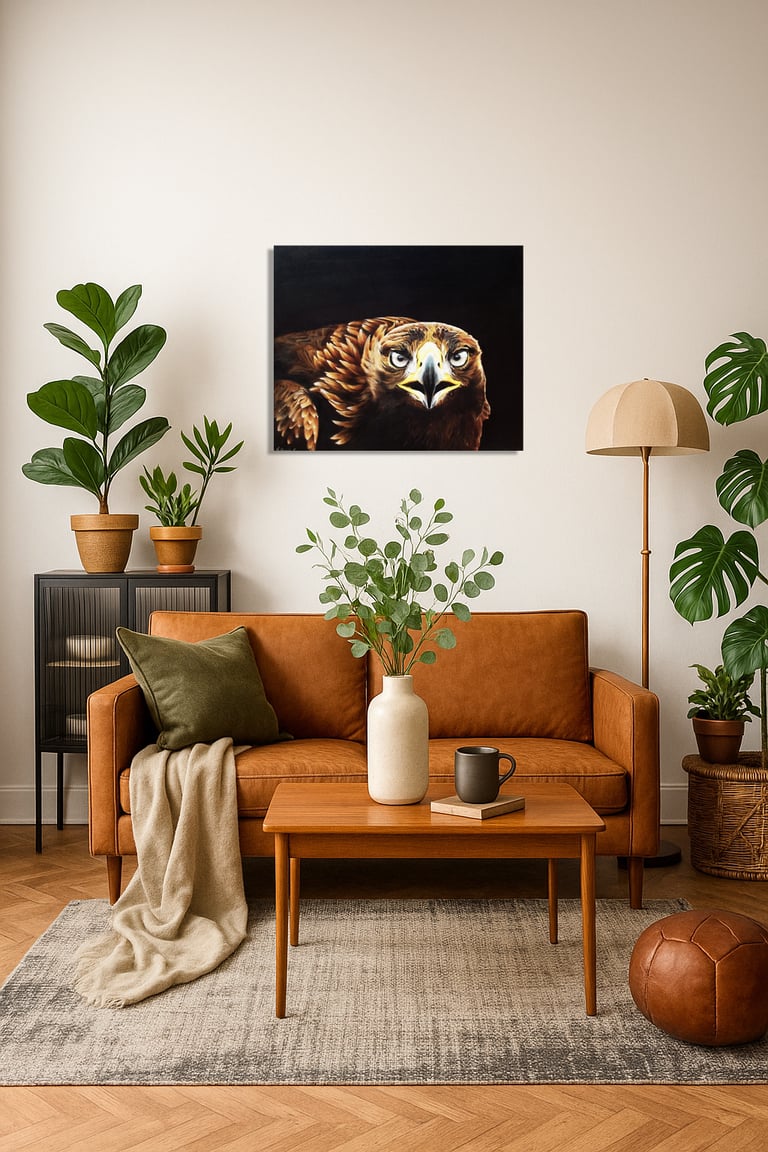 Toute la beauté et la puissance du regard de ce rapace nous pénètre au travers de ce clair obscur à l’esthétique impeccable.