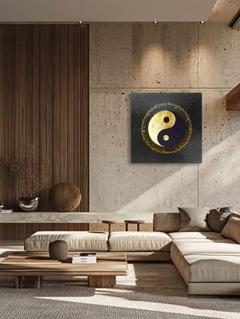 Toute une symbolique reprise par le contraste de l’or et du noir, du mat et du brillant, l’apparente opposition de la lumière face à l’obscurité, de l’ignorance face au savoir.