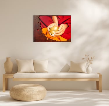 Beauté et spiritualité se rejoignent symboliquement pour mettre en valeur la simplicité du geste méditatif.